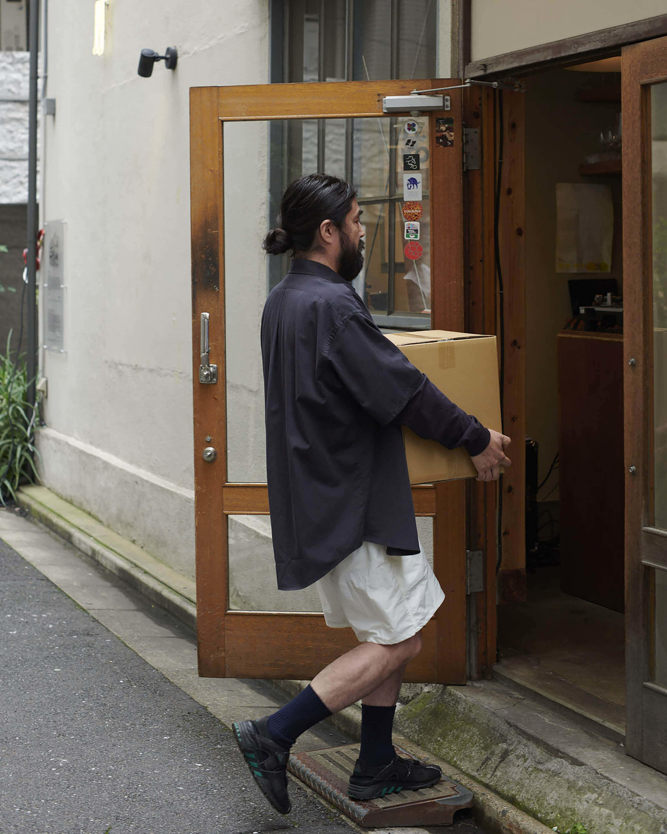 金子:ミリタリーウェアも、いろんな体型のひとが着られるように考えられていて、まさにそういう感じですね。だけど〈Y〉の場合はカジュアルウェアだから、フィット感を高めるというよりは、もっと自由な発想で着られるものを目指しています。フィッティング中もああだこうだ言いながら、いい塩梅を模索してますね。