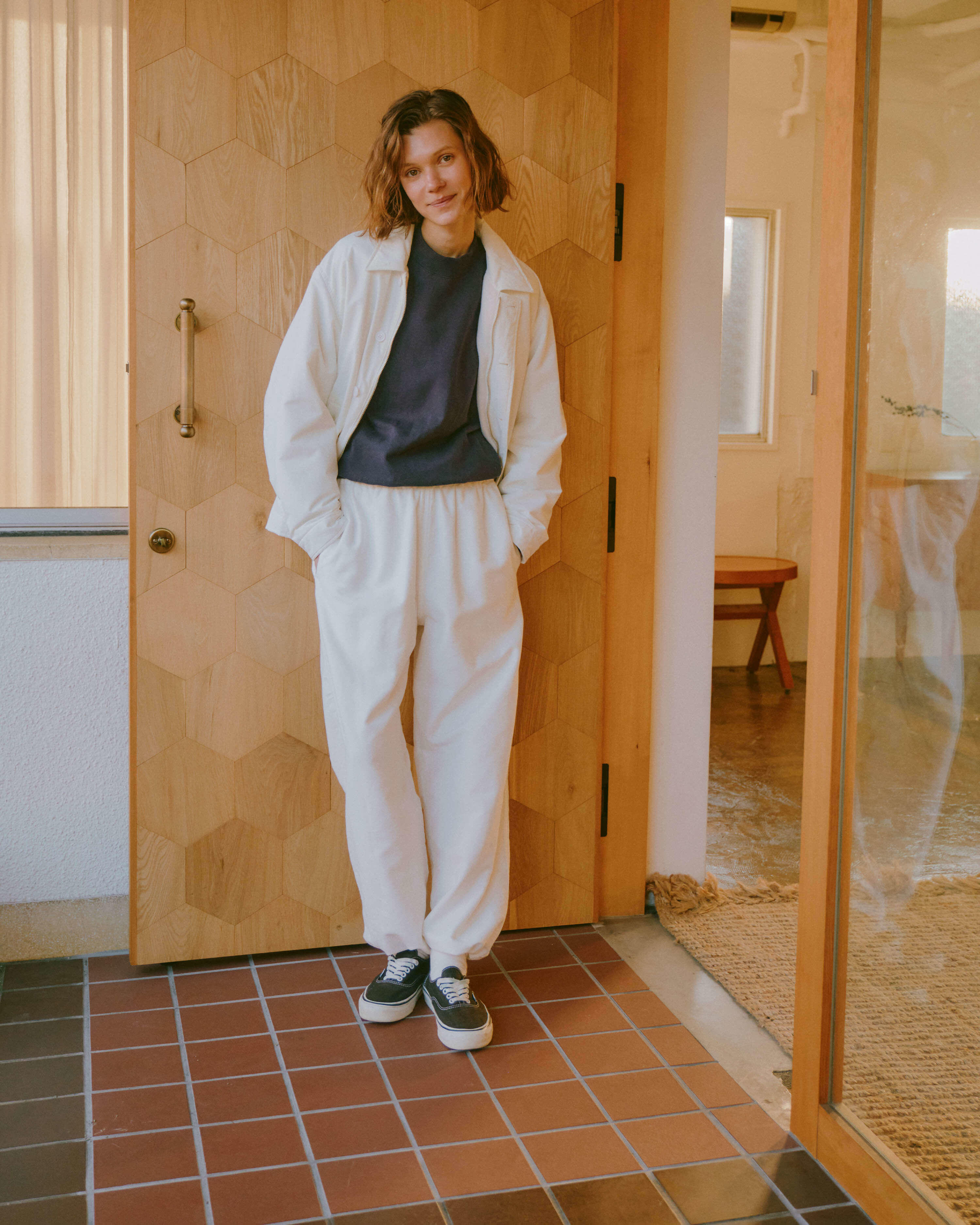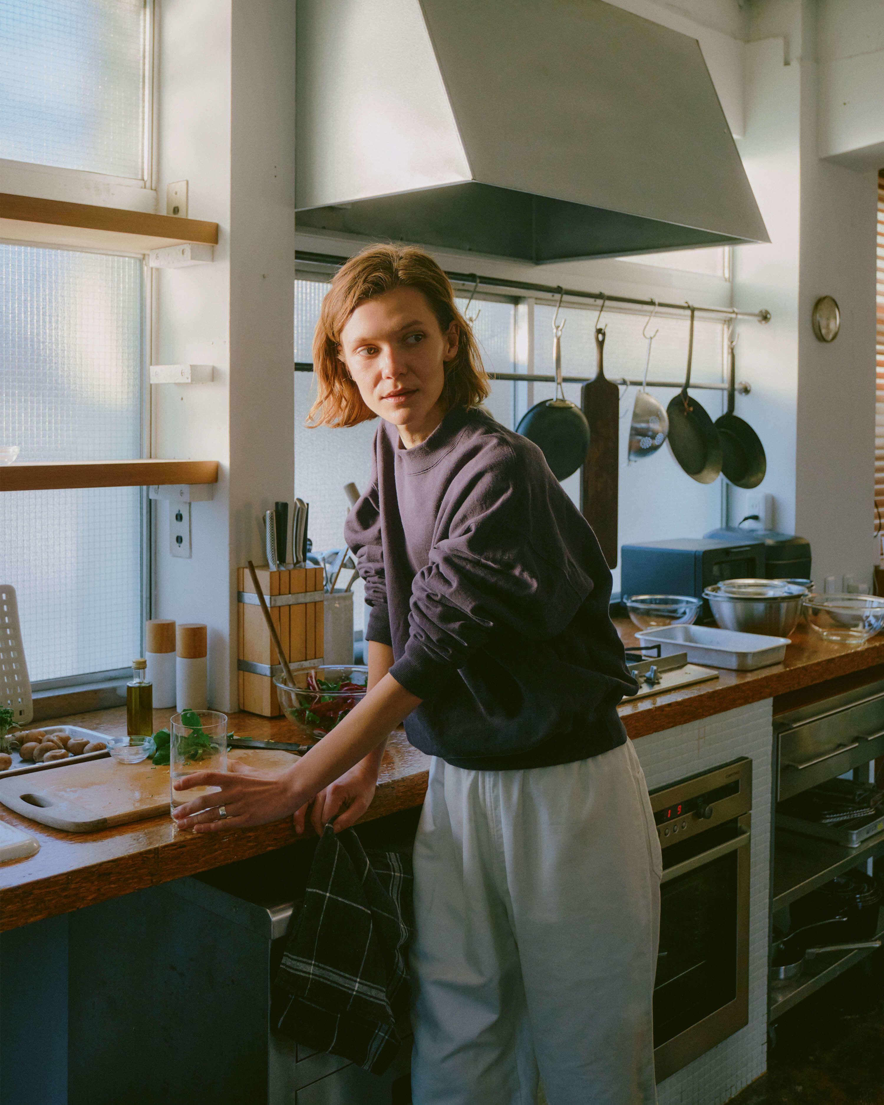 アレクサンドラ:すごく心地がいいです。そしてそれが確かであることを感じます。ただ単にクオリティがいい服はたくさんあるけれど、それがしっかりと確かなこだわりを持って作られていると感じる服は多くありません。カジュアルなんだけど品があって、私はすごく好きですね。日常的でシンプルなデザインだけど、自分の意志でそれを手に取れるというか、「これを着たい」っていう気持ちにさせてくれる服だと思いますね。