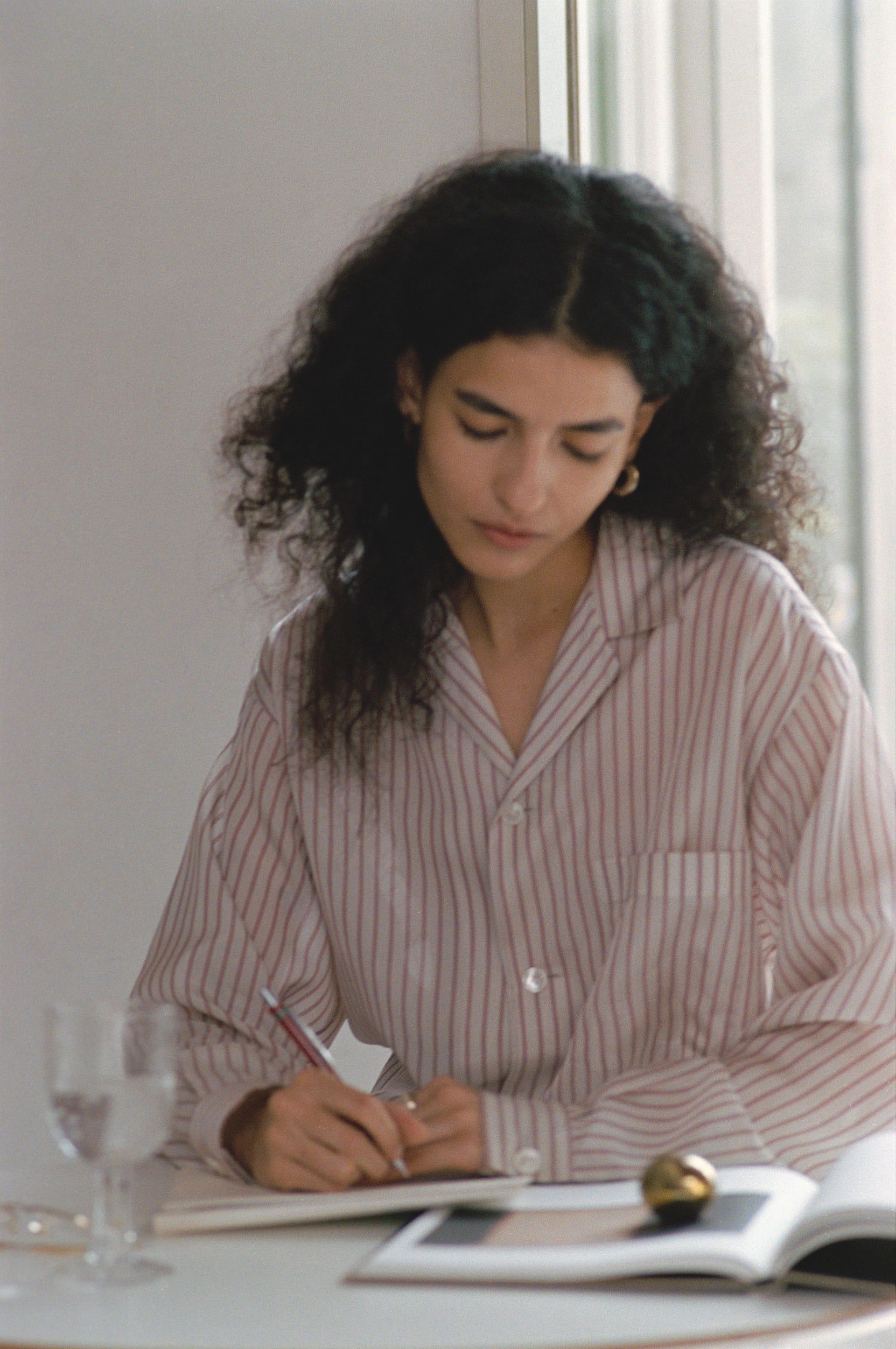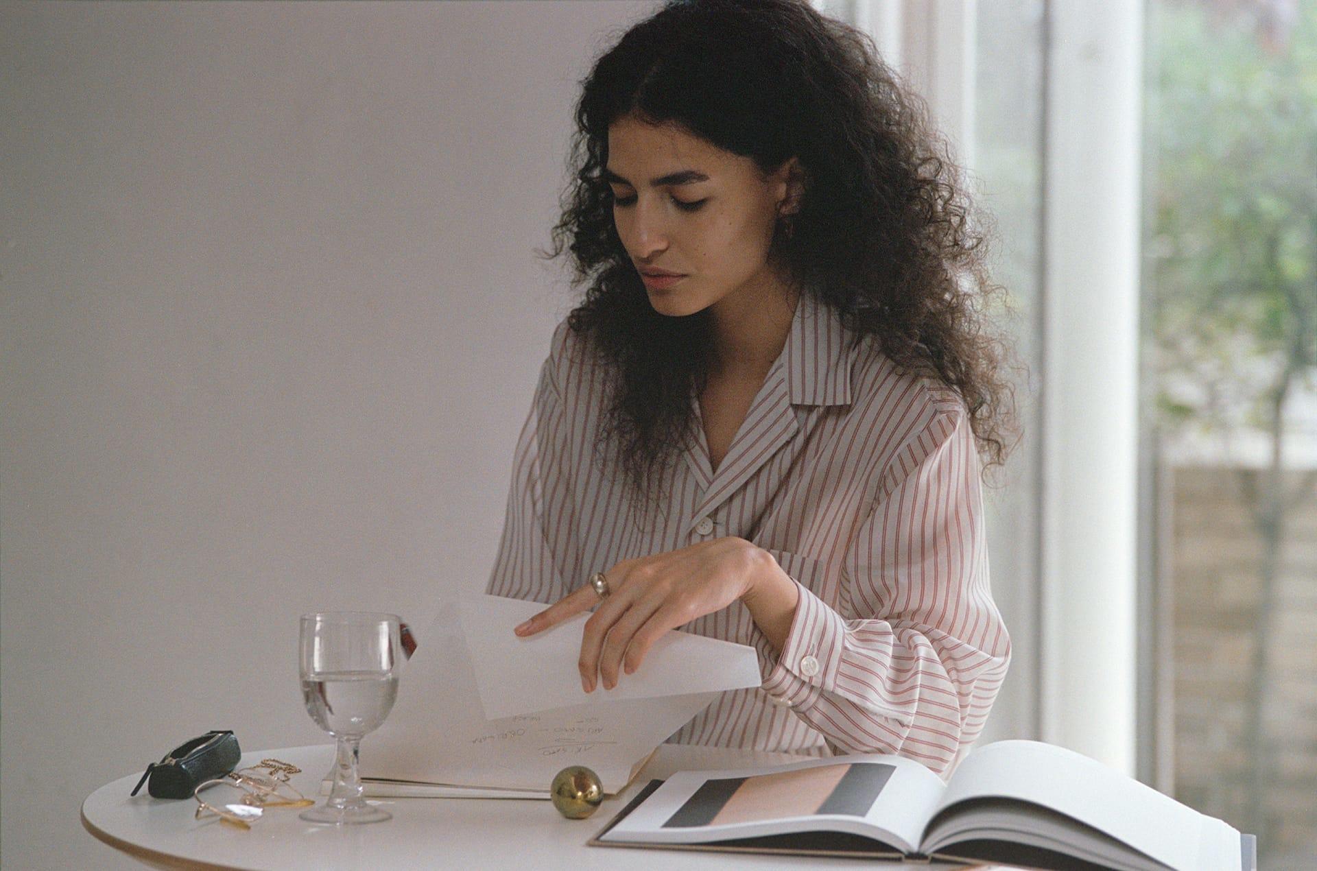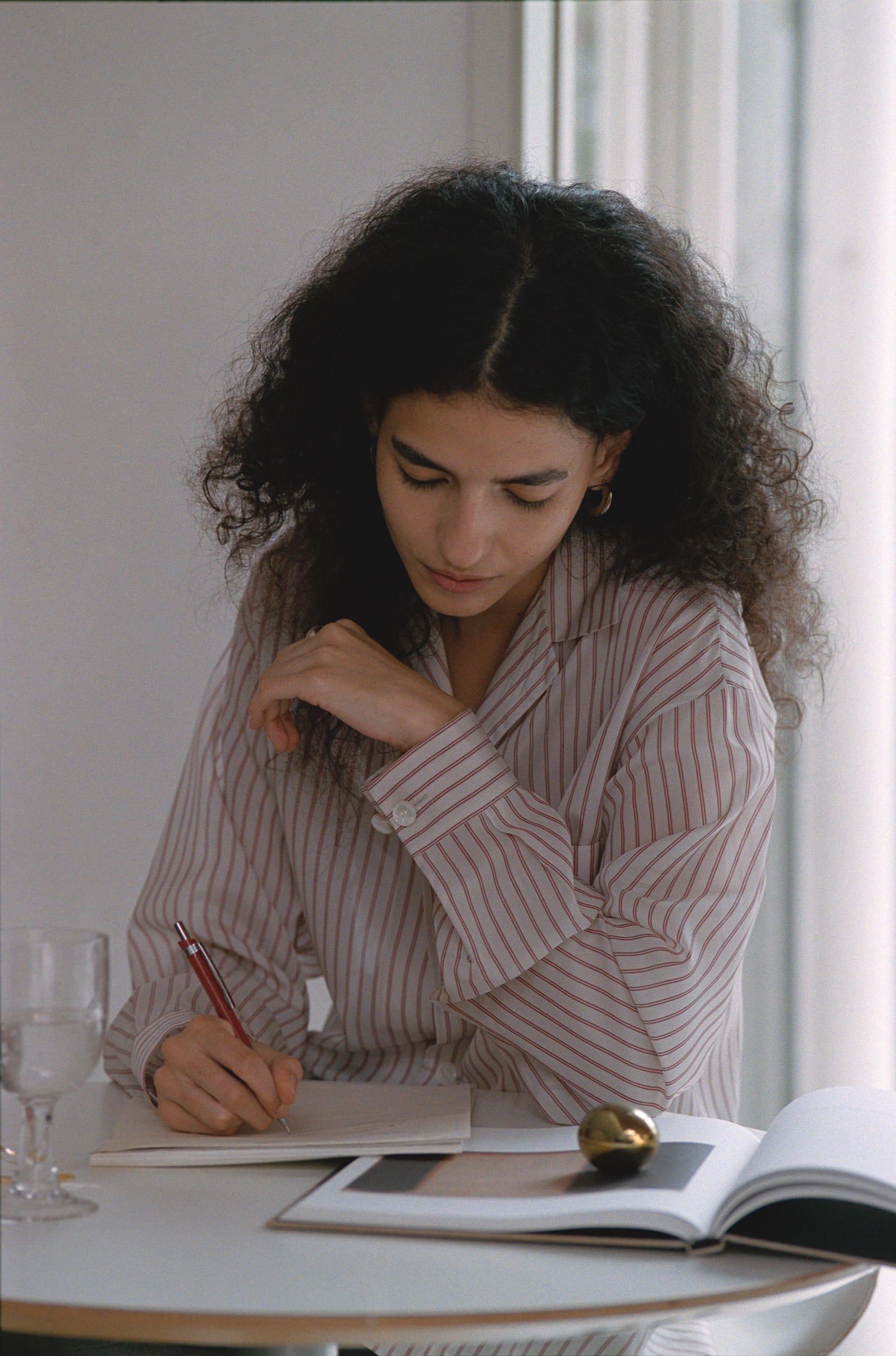 YLÈVEでは、女性があえてメンズサイズを選ぶことも想定してデザインを行ってきた。ボディコンシャスなシルエットによって女性らしい体の線を拾うのではなく、メンズライクな大きめの服を纏いながらも、袖口からのぞく手首の細さ、オープンカラーが作り出すデコルテの抜け感など、繊細なセンシュアルさも大切にしている。日常に溶け込み、さりげなく個性を漂わせるパジャマシャツとなった。