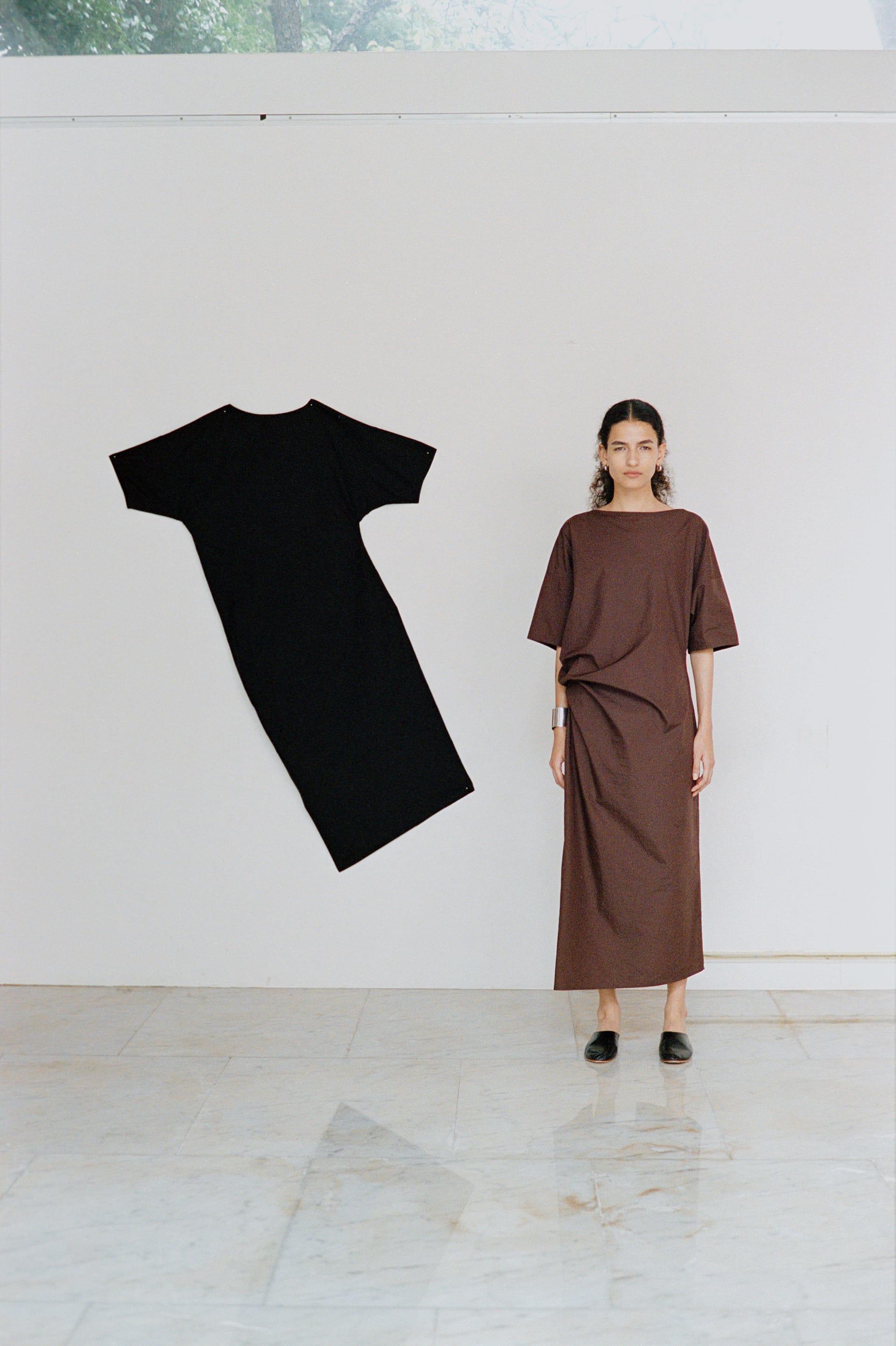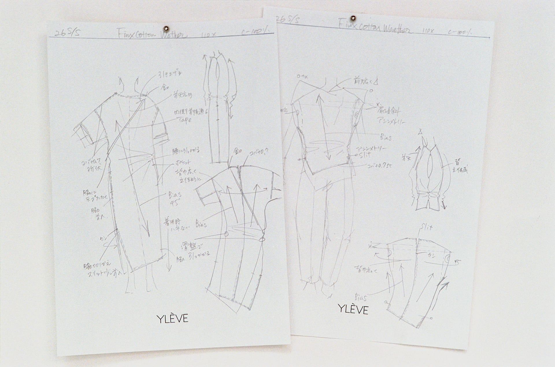 タックやギャザーなどは入れずミニマルに。「着る」という行為によって引き起こされる、生地の自然な表情を楽しむワンピースだが、そうなると、素材の質感も大切になる。YLÈVEは夏の定番として継続的に使用しているフィンクスコットンを選び取った。